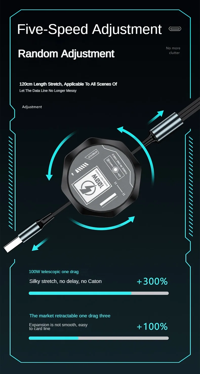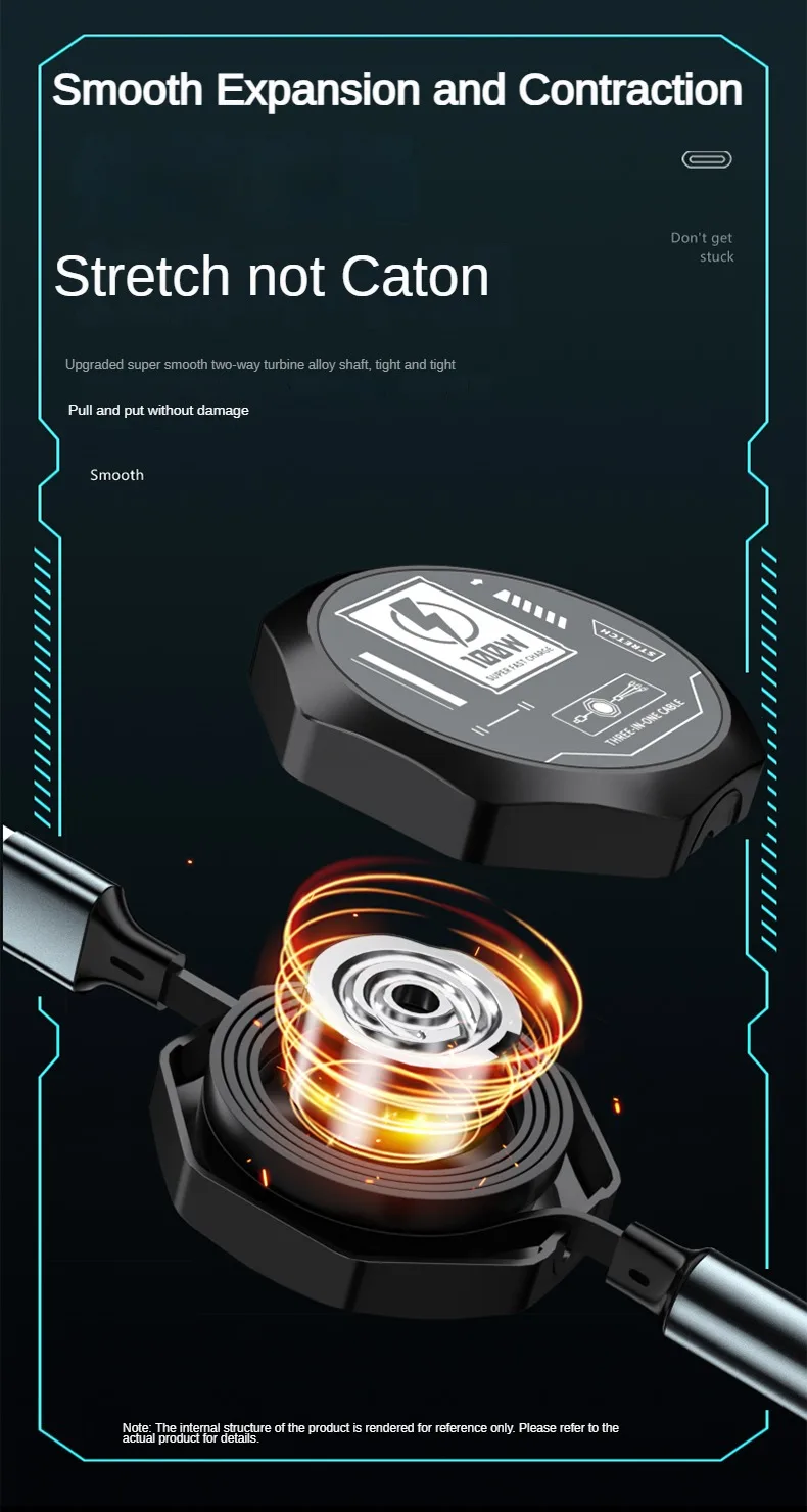 This cable can be stretched and retracted, but the correct way to use it is to pull both sides at the same time, that is, the USB and Type-C ports need to be pulled on both sides at the same time. If you want to stretch and retract the cable, pull both sides at the same time until the end and it will be recycled.